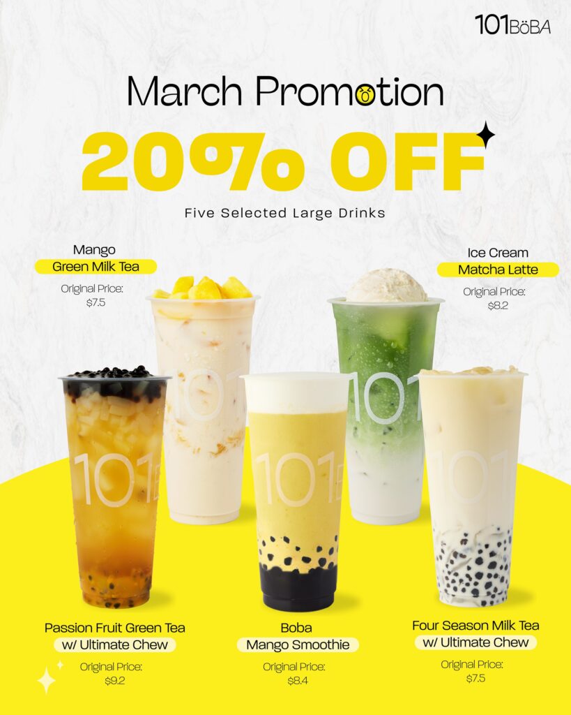 March Promotion: Enjoy 20% Off Selected Large Drinks at 101 Canada Boba